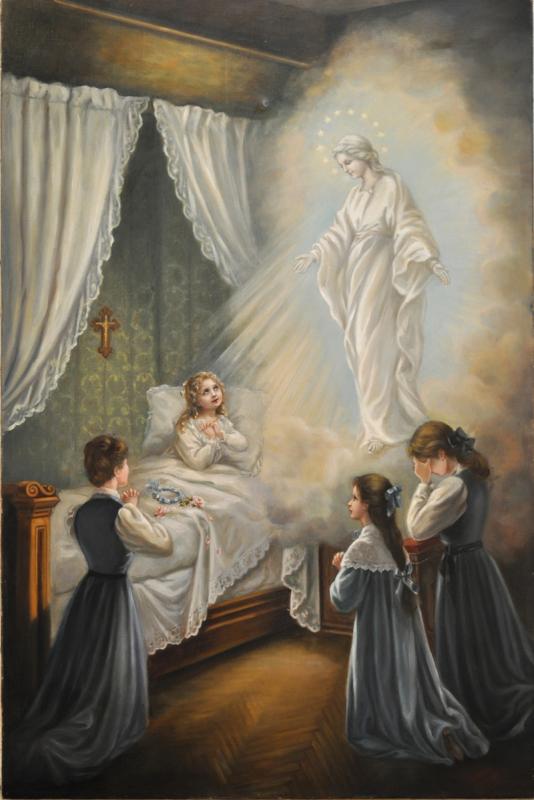 “Do leito, virei meu olhar para a imagem de Nossa Senhora e… De repente, a Santíssima Virgem pareceu-me bonita, tão bonita que nunca vira algo semelhante, seu rosto exalava uma bondade e uma ternura inefáveis, mas o que calou fundo em minha alma foi o ‘sorriso encantador da Santíssima Virgem’. Todas as minhas penas se foram naquele momento, duas grossas lágrimas jorraram das minhas pálpebras e rolaram pelo meu rosto, eram lágrimas de pura alegria. Ah! pensei, a Santíssima Virgem sorriu para mim, estou feliz!”
